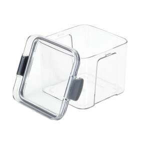 Pote Hermético Quadrado Transparente com Trava 700ml Cinza Organização com estilo, pote com vedação que isola bem e mantem o sabor, aroma e textura dos alimentos por muito mais tempo, possui vedação com anel de silicone e 2 travas laterais que dão um reforço maior, pode ser usando para armazenar alimentos secos como grãos, temperos, biscoitos como também conservas, molhos etc., possui tampa que permite empilhamento, deixando seu armário mais organizando aproveitando cada espaço.