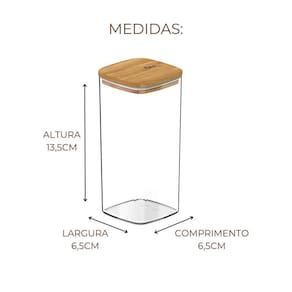 Sobre o produto O pote hermético keep 340ml garante organização e cuidado para os seus temperos, trazendo mais tranquilidade e bem-estar para a sua rotina. A tampa de bambu promove a sustentabilidade de um material 100% renovável, e traz sofisticação para decorar a sua casa. Seu design modular promove a harmonia do ambiente. A vedação hermética bloqueia a entrada de ar e conserva os alimentos por mais tempo. Produzido em material resistente, o organizador garante durabilidade, praticidade e fácil higienização. Cuidados Lave com esponja macia e sabão neutro, enxague com água abundante. Não utilize produtos abrasivos que possam riscar o produto ex. Palha de aço . Não deixe de molho submerso na água. Seque imediatamente após a lavagem. Guarde em local seco e arejado. Caso a parte de bambu apresente mofo, limpe-o com um pano umedecido em vinagre branco. Não levar ao micro-ondas Não levar ao freezer Não levar à lava-louças Ficha técnica Altura: 13.5cm Largura: 6.5cm Profundidade: 6.5cm Peso: 100g Capacidade: 340ml Material: poliestireno + bambu Marca: ou : 3 meses Estamos online para quaisquer dúvidas, Agradecemos e aguardamos o seu pedido. Marca: Não Informado Ean: 7908466037871
