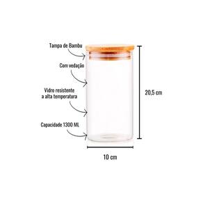 Design Moderno e Funcional: A forma elegante e a transparência do vidro permitem visualizar o conteúdo facilmente. O anel de silicone na tampa garante uma vedação total, conservando os alimentos por muito mais tempo. A tampa de bambu natural não apenas evita a proliferação de bactérias, mas também adiciona um toque de sofisticação à sua cozinha.