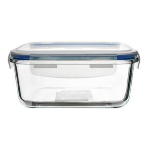 O corpo retangular alia estética e otimização de espaço, enquanto a tampa com travas garante vedação eficiente, mantendo os alimentos frescos.