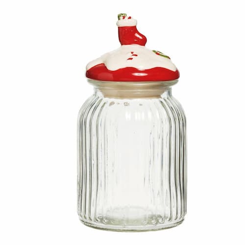 Pote Hermético De Vidro Com Tampa Em Cerâmica Com Botinha - Composição/Matéria Prima - 60% Vidro 40% Cerâmica - Cor Predominante - Incolor/Vermelha - Cod. Cromus - 1592766 - Instruções Adicionais e Limpeza - Limpar com pano úmido quando o item estiver desligado e totalmente frio