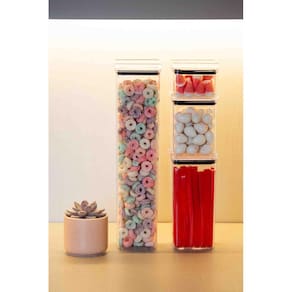 Além disso, a praticidade é um ponto forte deste produto. O formato permite um aproveitamento máximo do espaço em sua despensa, enquanto o design moderno e transparente proporciona uma visão clara do conteúdo, facilitando a identificação dos alimentos e evitando desperdício. Além disso, ele é empilhável, o que faz você ganhar mais espaço na sua despensa.