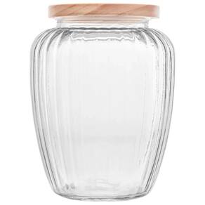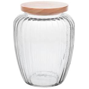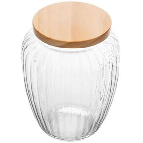 Este pote é excelente para o armazenamento de alimentos e objetos diversos.. É confeccionado em vidro e possui tampa de pinus, o que confere um visual decorativo muito lindo.. São ótimos para serem utilizados em prateleiras visíveis e também para a otimização dos espaços internos dos armários, proporcionando sofisticação ao ambiente.. Além de super útil, deixa a cozinha ou a dispensa com um aspecto mais elegante e moderno.. Cor: vidro incolor com tampa de pinus.. Capacidade: 2,4 l.. Dimensões: 16 cm x 16 cm x 20,5 cm.. Composição: vidro.. Contém 1 peça.. Conteúdo da embalagem: 1 pote..