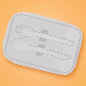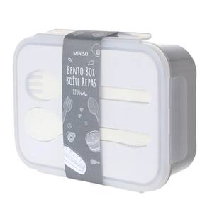 Marmiteira Bento Box Retangular 1200ml com Talheres Cinza   Fabricado em plástico de qualidade alimentar de alta resistência, livre de BPA. Oferece capacidade de 1200 ml com design retangular, tampa ajustável com detalhe de encaixe nas laterais, capa portátil para colocar talheres e interior com separador. Inclui colher e garfo. Permite utilizar em micro-ondas, temperatura adequada de 0°-100° C (retirar primeiro a tampa), não adequado para máquina de lavar louça, forno ou armário de desinfecção. Leve os seus almoços para o trabalho ou para o escritório, guarde e mantenha os alimentos frescos no frigorífico! Graças à sua capacidade, poderá armazenar e transportar uma grande variedade de alimentos.