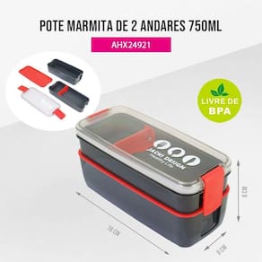 - Capacidade: 750 ml, divididos em 2 andares com divisória interna