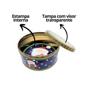 Lata Metal Redondo Decorado Natal Papai Noel Com Visor 800ml