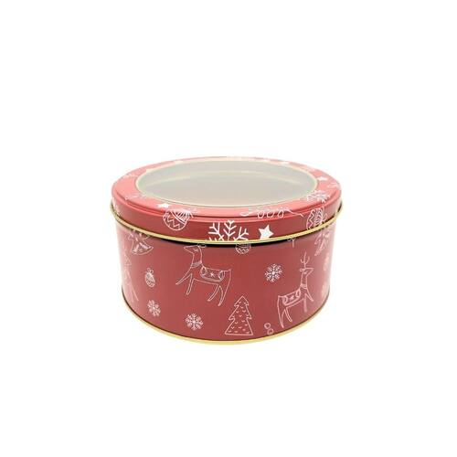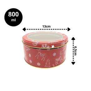 Pote Metal Redondo Decorado Natal Rena Com Visor 800ml