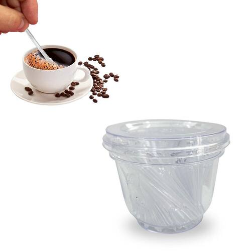 Um objeto decorativo e sofisticado uma ótima opção para servir com mais elegância doces, sobremesas e salada de frutas.Pote mexedor para café cristal c/200 unidadesDescrição:Quem não gosta de tomar aquele café quentinho pela manhã néPara misturar o açúcar do seu café temos esse mexedor de cristal, ideal para mexer sucos, café, chá, entre outras bebidas.Produto indicado para quem não abre mão de praticidade para servir e limpar.- acrílico cristal é premium qualidade superior- produto de qualidade premium superior;- super resistente porque foi feito para durar;- acabamento de alto brilho com design moderno; - indispensável em casa, ideal para comércios, festas, eventos e buffets. muito utilizado por profissionais Sucesso comprovado, quem utiliza aprova e recomendaCaracterísticas:Pote:Altura: 7,5cmDiâmetro: 9cmDimensões pazinha: 70 mm x 8 mm200 unidadesConteúdo:- 1 x pote mexedor para café cristal com 200 unidadesCód: 3t00314Sku:tb005015