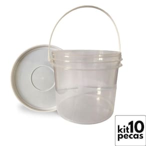 Balde transparente 2. 2 litros com tampa lacre de segurança 100% bpa free - 10 peças