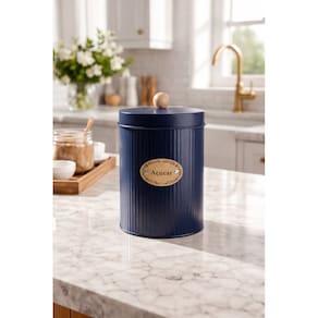 Pote Para Açucar Com Tampa Hermética E Puxador De Bambu Azul Marinho -