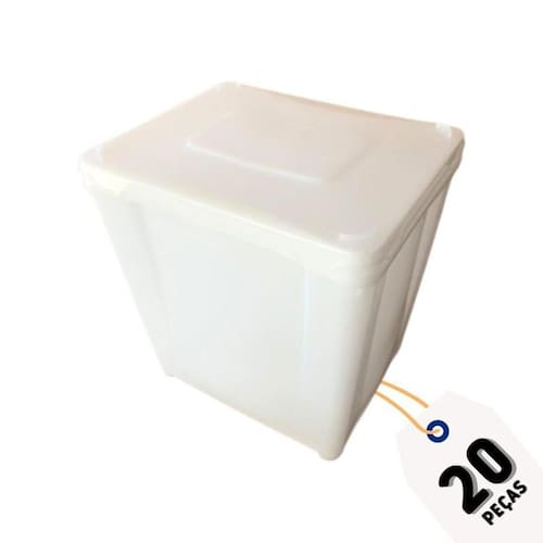 20 x potes plastico branco retangular de 10 litros 20 x tampas plasticas branca retangular