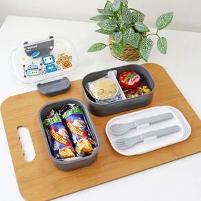 Pote para Lanche de 2 Andares Amiguinhos 400 ml - Jacki Design Robo Preto - Pote para Lanche de 2 Andares Amiguinhos