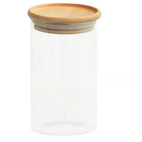 Pote para mantimentos de vidro com Tampa de Bambu Circular 600ml - OIKOS