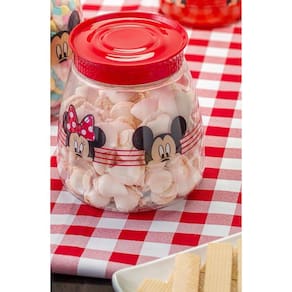 A criançada vai adorar Ótimo para enfeitar sua mesa com quitutes nos lindos potes Mickey e MInnie, de fácil manuseio e fácil limpar. Medida do pote 1600 ml Altura de 14,5 cm, fundo 13cm e largura da tampa 9 cm