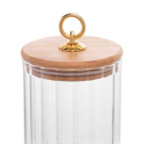 O Porta Mantimento de Vidro Canelado com Tampa de Bambu e Puxador de Metal Classic da Wolff é a escolha ideal para quem busca praticidade e estilo na organização dos alimentos.