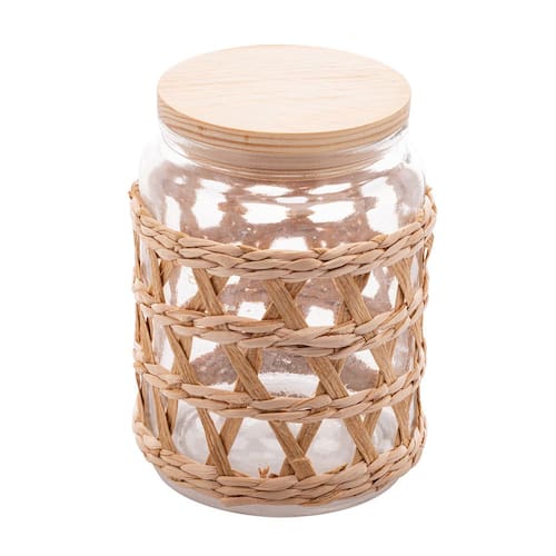 Este pote de vidro decorado com sisal proporcionará a praticidade e beleza ao armazenar seus mantimentos e decorar sua cozinha. Cheio de charme e fabricado em vidro e tampa de madeira, esta charmosa peça conta com muita funcionalidade e qualidade, possui decoração em volta de toda a peça com sisal.