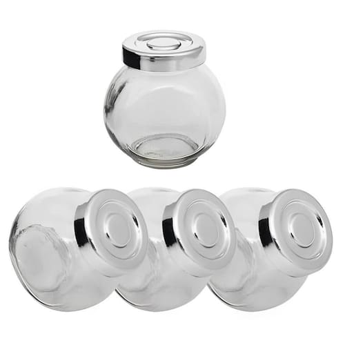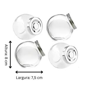 Fabricados em vidro de alta qualidade, os potes têm 8 cm de altura e um design transparente que proporciona uma visão clara do conteúdo, além de agregar um toque sofisticado à sua cozinha.