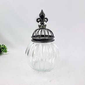 Pote Potiche Decorativo Flor De Lis Ferro E Vidro 25x16cm Elegância e Sofisticação: Potiche de Vidro com Tampa de Ferro e Flor de Lis em Resina
