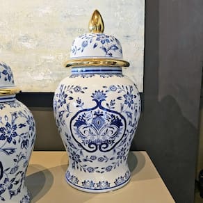 Design Clássico e Atemporal: Padrão floral em azul e branco, que harmoniza com diversas decorações. Material Nobre: Fabricado em porcelana resistente e com acabamento de alta qualidade. Versatilidade: ideal para decorar qualquer ambiente, adicionando um toque de sofisticação. Presença Marcante: Tamanho e design que garantem um destaque elegante no ambiente. Presente Sofisticado: Uma excelente opção para presentear amantes de decoração clássica.