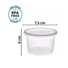 O Pote Redondo 250Ml Com Tampa Transparente é fabricado com polipropileno, um material plástico não tóxico.