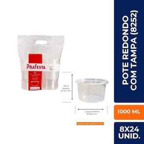 Pote redondo para Bolo de Pote 1000 Ml com tampa C/8x24 Un (PRAFESTA)
