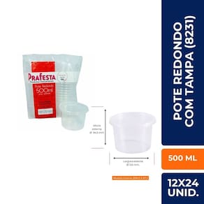 Pote redondo para Bolo de Pote 500 Ml com tampa C/12x24 Un (PRAFESTA)