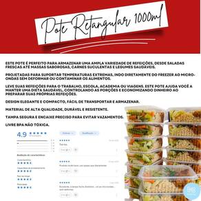 Com uma capacidade de 1000ml, este pote é perfeito para armazenar uma ampla variedade de refeições, desde saladas frescas até massas saborosas, carnes suculentas e legumes saudáveis. Sua versatilidade é incomparável, permitindo que você também utilize o pote para guardar sobremesas, lanches, frutas, snacks e até mesmo pequenos objetos, como bijuterias e medicamentos.