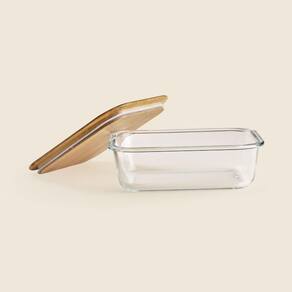 Pote Retangular Vidro e Bambu 1L - A\CASA