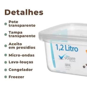 Pote Retangular Volare 1,2lts Mantimentos Rischioto 1,2L Marmita Fitness Organizador Alimentos - PANAMI
