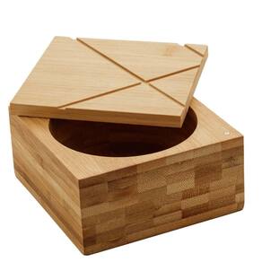 Pote Saleiro Bambu Lyor com Tampa para Cozinha 13x13x7cm Quadrado.