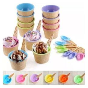 O Pote de Sorvete Casquinha Tigela Com Colher Sobremesa é perfeito para adicionar um toque de diversão na hora do lanche das crianças. Com formato de uma casquinha de sorvete, este pote de sobremesa é ideal para servir sorvetes, sundaes, iogurte congelado, frutas e qualquer tipo de sobremesa.