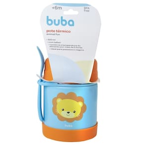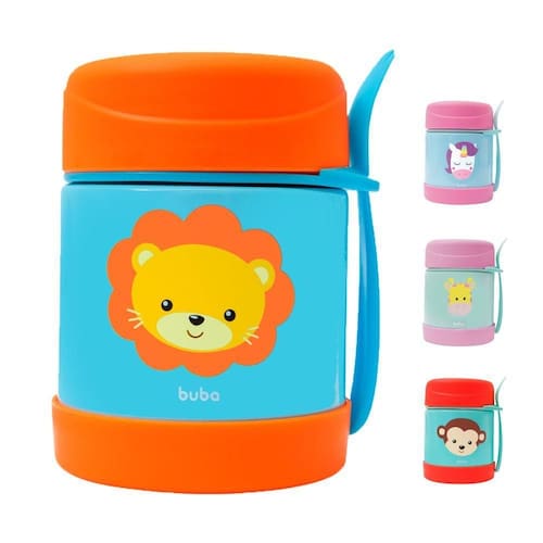 Pote térmico alimentação comida do bebe infantil aço inoxidável com talher papinha animal fun Cor: leão