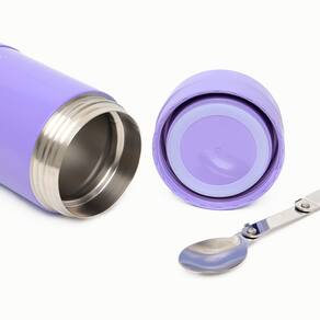 O Pote Térmico Infantil Thermos Funtainer F302 Lilás - 470 ml de capacidade, combina beleza e funcionalidade para o dia a dia das crianças. Desenvolvido para pais que buscam praticidade e segurança, ele mantém a temperatura ideal de alimentos quentes por até 7 horas e frios por até 9 horas, tornando-se um item indispensável para garantir lanches e refeições frescas e saborosas a qualquer hora. Com a exclusiva tecnologia de isolamento a vácuo Thermos, este pote é feito em aço inoxidável com parede dupla, o que garante resistência a quedas, segurança ao toque e durabilidade. A parte externa não esquenta ao toque quando há alimentos quentes e não transpira com alimentos frios, proporcionando conforto e segurança para as crianças.