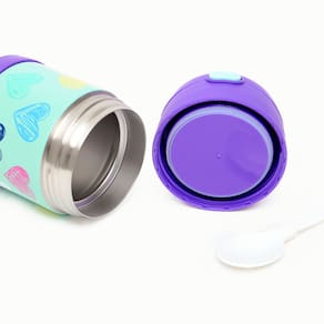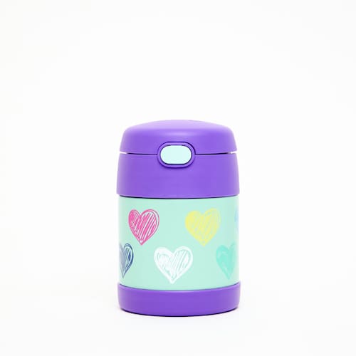 O Pote Térmico Infantil Thermos Funtainer com estampa de Corações Coloridos - 290 ml é o aliado perfeito para pais que buscam segurança e praticidade nas refeições das crianças. Com capacidade para manter a temperatura dos alimentos quentes por até 5 horas e frios por até 7 horas, este pote em aço inoxidável é fabricado com a tecnologia exclusiva de isolamento a vácuo da Thermos, assegurando máxima durabilidade e eficiência térmica. Seguro e fácil de transportar, o Pote Térmico Funtainer F300 é leve, resistente a quedas e conta com uma estrutura de parede dupla, que mantém o exterior frio ao toque quando contém alimentos quentes e evita a condensação com alimentos frios.