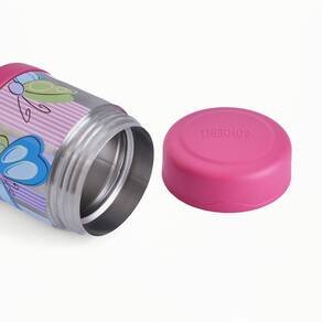 O Pote Térmico Infantil Thermos Funtainer F300 com estampa de Borboletas - 290 ml é o aliado perfeito para pais que buscam segurança e praticidade nas refeições das crianças. Com capacidade para manter a temperatura dos alimentos quentes por até 5 horas e frios por até 7 horas, este pote em aço inoxidável é fabricado com a tecnologia exclusiva de isolamento a vácuo da Thermos, assegurando máxima durabilidade e eficiência térmica. Seguro e fácil de transportar, o Pote Térmico Funtainer F300 é leve, resistente a quedas e conta com uma estrutura de parede dupla, que mantém o exterior frio ao toque quando contém alimentos quentes e evita a condensação com alimentos frios.