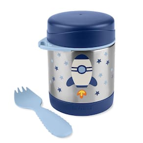 Embale suas refeições com estilo épico Com designs superlegais que deixam a personalidade dos pequenos brilharem, o Pote Térmico com Talher Spark Style Espaço da Skip Hop mantém os alimentos quentes por 7 horas ou frios por 5 horas. Com capacidade de 325 ml, é ideal para levar alimentos frescos para os nossos pequenos durante os passeios ou para o lanche da escola. Feito de aço inoxidável, vem com o suporte de talher embutido.