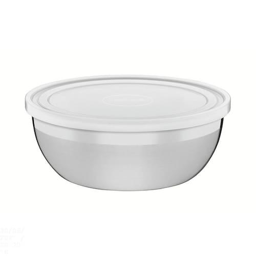 Preparar alimentos e armazená-los no mesmo local é um problema. Ou melhor, era um problema. Com este Pote Tramontina Redondo em Aço Inox com Tampa Plástica 25 cm de diâmetro 4,2 L da linha Freezinox, você tem em mãos um produto de alta qualidade, durável, higiênico e, acima de tudo, prático. Seja para colocar na geladeira ou no freezer, não precisa pensar muito. Depois de pronto o alimento você utiliza o próprio pote que a conservação da qualidade, do sabor e da textura estarão garantidos. Sem contar, claro, a beleza do produto, cujo acabamento fosco e os detalhes em brilho dão a ele características nobres. OBS: pode ser colocado na máquina de lavar louças. Orientações Em aço inoxidável, altamente durável, mantém as características originais, preservando a beleza, a higiene e a durabilidade do material. Seu desenho limpo e sem cantos torna a limpeza muito mais fácil. Acabamento fosco com detalhes em brilho deixa o produto mais nobre. A tampa possui vedação perfeita para a boa conservação dos alimentos. Ideal para preparar e armazenar os alimentos, pode ir à geladeira ou ao freezer.Pode ser lavado diariamente na máquina de lavar louças. Características Gerais EAN13 7891116043875 DUN14 17891116043872 NCM 7323.93.00 Peso Líquido 0,5550 kg. Peso Bruto 0,6100 kg. Metragem 0,007444 m³. Dimensões Embalagem (Compr. X Larg. X Alt.) 265x 265x 106 mm. Dimensões Produto (Compr. X Larg. X Alt.) 266x 266x 105 mm. Diâmetro 25,0 cm. Capacidade 4,19 l. Espessura 0,6 mm. Observações Use apenas sabão ou detergente e uma esponja macia. Outros tipos de produto como palha de aço, poderão riscar ou prejudicar o brilho da peça. Enxágue cada item a fim de remover totalmente os resíduos dos produtos de limpeza, que, por serem abrasivos, podem danificar o inox. Sempre que possível, use água quente, pois renova o brilho da peça. Após a lavagem, enxugue imediatamente a peça, caso contrário, as substâncias químicas da água (cloro) poderão causar manchas. Evite atrito entre as peças durante o processo de lavagem e no armazenamento, para mantê-la sem riscos. Evite o contato do produto com superfícies quentes, pois elas provocam a descoloração do material. Não guarde a peça em locais úmidos. A umidade também provoca manchas.