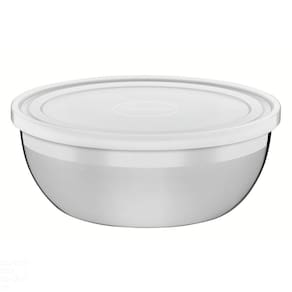 Com a correria do dia a dia, o que mais precisamos é de praticidade. A linha de Pote Tramontina Redondo em Aço Inox com Tampa Plástica 28 cm de diâmetro 5,8 L da linha Freezinox, possui design arrojado e acabamento fosco com detalhes em brilho que deixa sua cozinha muito mais bonita. Ideal para preparação e armazenamento de alimentos, podendo ir à geladeira ou ao freezer, a linha ainda conta com um desenho limpo e sem cantos que torna a limpeza muito mais fácil, além de ter a vantagem de poder ir diariamente na máquina de lavar louças. Quem conhece se apaixona, quem leva indica! Orientações Em aço inoxidável, altamente durável, mantém as características originais, preservando a beleza, a higiene e a durabilidade do material. Seu desenho limpo e sem cantos torna a limpeza muito mais fácil. Acabamento fosco com detalhes em brilho deixa o produto mais nobre. A tampa possui vedação perfeita para a boa conservação dos alimentos. Ideal para preparar e armazenar os alimentos, pode ir à geladeira ou ao freezer.Pode ser lavado diariamente na máquina de lavar louças. Características Gerais EAN13 7891116043882 DUN14 17891116043889 NCM 7323.93.00 Peso Líquido 0,6950 kg. Peso Bruto 0,7600 kg. Metragem 0,010182 m³. Dimensões Embalagem (Compr. X Larg. X Alt.) 295x 295x 117 mm. Dimensões Produto (Compr. X Larg. X Alt.) 297x 297x 116 mm. Diâmetro 28,0 cm. Capacidade 5,84 l. Espessura 0,6 mm. Observações Use apenas sabão ou detergente e uma esponja macia. Outros tipos de produto como palha de aço, poderão riscar ou prejudicar o brilho da peça. Enxágue cada item a fim de remover totalmente os resíduos dos produtos de limpeza, que, por serem abrasivos, podem danificar o inox. Sempre que possível, use água quente, pois renova o brilho da peça. Após a lavagem, enxugue imediatamente a peça, caso contrário, as substâncias químicas da água (cloro) poderão causar manchas. Evite atrito entre as peças durante o processo de lavagem e no armazenamento, para mantê-la sem riscos. Evite o contato do produto com superfícies quentes, pois elas provocam a descoloração do material. Não guarde a peça em locais úmidos. A umidade também provoca manchas.
