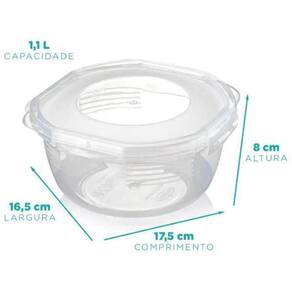 DESCRITIVO TAMANHO M: Largura: 18 cm Comprimento: 17 cm Altura: 8 cm Capacidade: 1,1 L