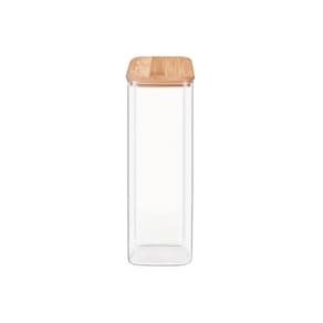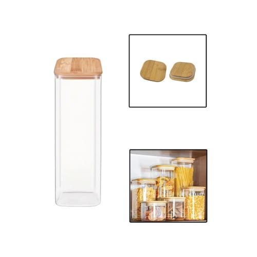 - 01 Pote Quadrado De Vidro Borossilicato 2000ml Com Tampa De Bambu.