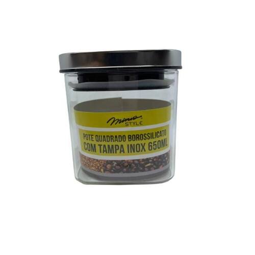 Pote De Vidro Borrosilicato Com Tampa Quadrada Inox 650Ml - Mimo Style Pote De Vidro Borrosilicato Com Tampa Quadrada Inox - Mimo Style