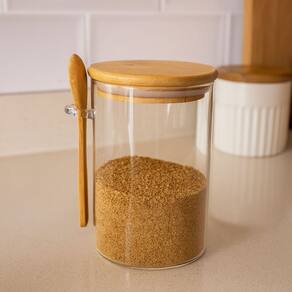 O pote possui fechamento hermético, garantindo maior conservação dos alimentos, além de uma tampa em bambu com anel de vedação em silicone e suporte lateral com colher de bambu de 12,5cm inclusa – perfeito para facilitar o uso e manter tudo organizado.