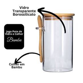 Pote de Vidro Hermético 870ml com Tampa de Bambu e Colher – Modelo Redondo com Suporte Lateral