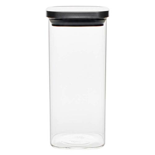 Pote Vidro Hermético Quadrado Tampa Inox 2100Ml Vista Home