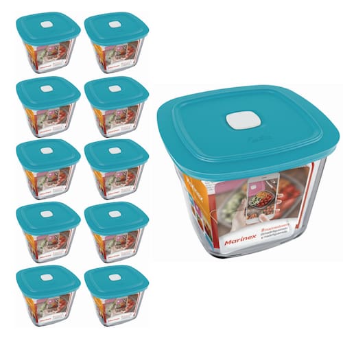 Pote De Vidro Quadrado Alto Com Tampa Marinex 1L 10 unidades