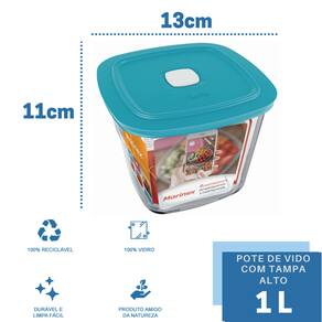 Pote De Vidro Quadrado Alto Com Tampa Marinex 1L 9 unidades