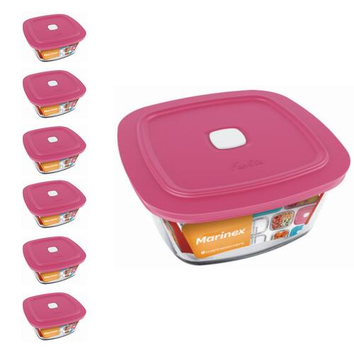 Pote De Vidro Quadrado Com Tampa Marinex 1L 6unidades