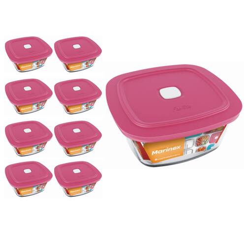 8 Potes De Vidro Marinex Facilita Quadrado Com Tampa 1 Litro
