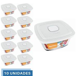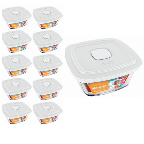 10 Potes De Vidro Marinex Facilita Quadrado Com Tampa 2 Litros
