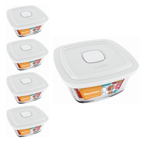 4 Potes De Vidro Marinex Facilita Quadrado Com Tampa 2 Litros